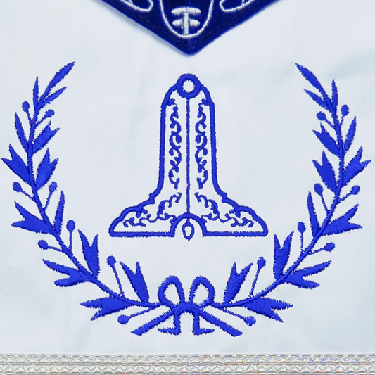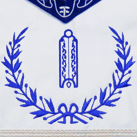 Blue Lodge Tyler Apron – Masonic Officer Regalia with Machine Embroidered Wreath & Sword – Royal Blue Ribbon Detailing
