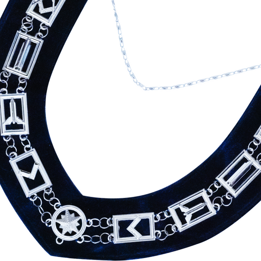 Blue Lodge Chain Collar | Silver Plated on Blue Velvet | Blue Lodge Chain Collar Set
