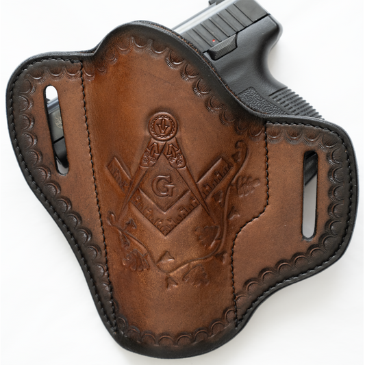 Masonic Hand-Tooled Leather Gun Holster | OWB Open Top Multi Fit Leather Belt Pistol Holster | A Testament to Craftsmanship and Tradition