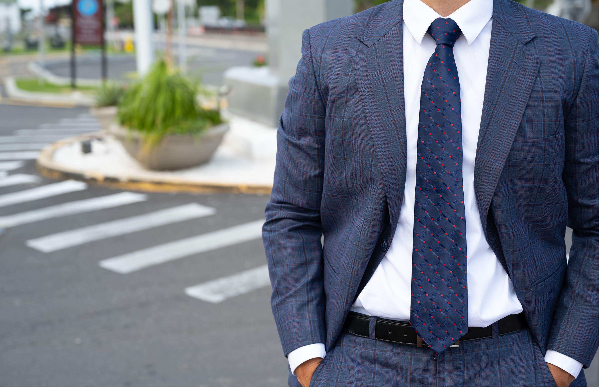 Navy Blue Masonic Tie – Diamond-Check Pattern with Red Accents – Square & Compass Design